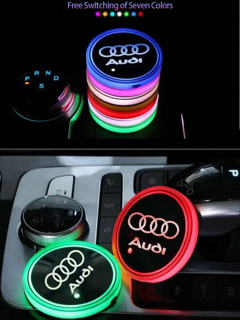 2Pcs 7-Colorful USB Led Atmosphere Light Cup Luminous Coaster Holder for A1 A3 A4 A5 A7 Q2 Q3 Q5 Q7 Q8 Auto Accessories