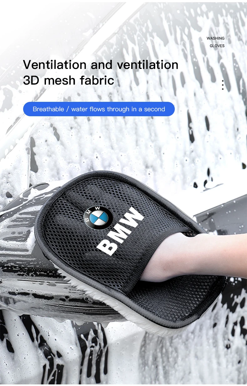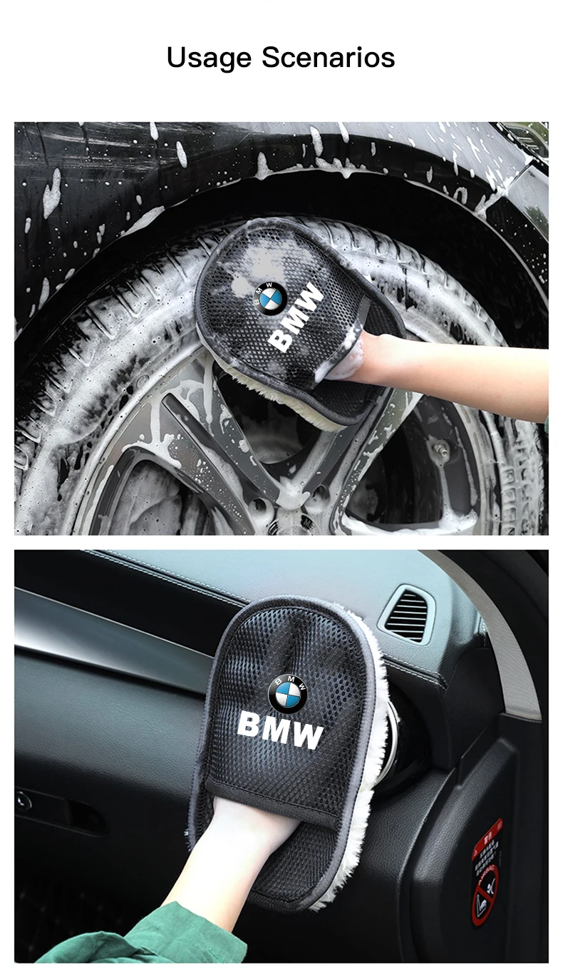 Car Wash Glove Wool Soft Polish Cleaning Brush Tools Auto Accessories For BMW Performance X3 G30 X5 F15 G05 X1 E39 E46 E90 F20 E60 F30 M3 M5 E36 F10 E87 E70 E91 E30 G3 X4 X6 X7 E30 E34 E53 E61 E62 E93 Alpina